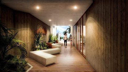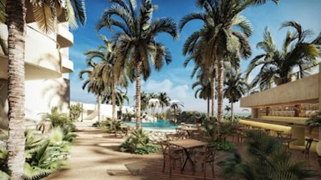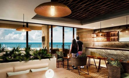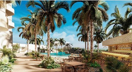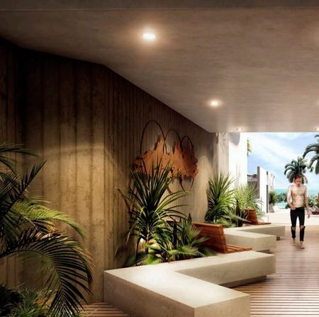 Cuenta con caseta de acceso, estacionamiento, amenidades como Lobby, área kids. sanitarios, lavandería, piscina kids, piscina adultos, área de camastros, nichos de reunión, snack bar, sanitarios de playa, renta de motos, servicio de toallas área de Reunión con horno de leña, área teens, arena multiusos, gimnasio, yoga room, sunset, sky lounge, business estos últimos con unas increíbles vistas, además de la zona beach club.