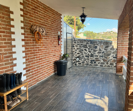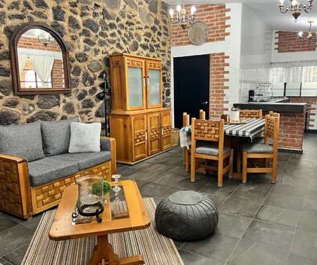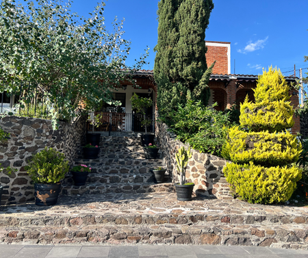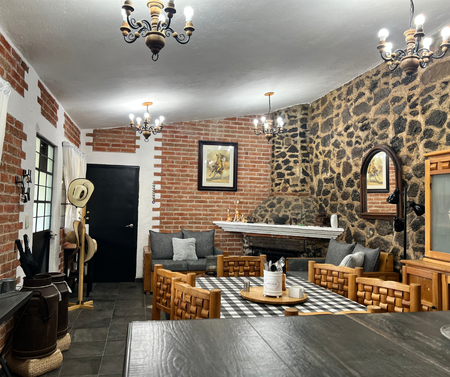 En el ala principal, la residencia fue remodelada recientemente y conserva una estética campestre con toques elegantes: piedra natural, techos altos, ventanales que enmarcan los jardines y una atmósfera acogedora en cada rincón. Cuenta con tres habitaciones, destacando la principal por su baño privado y clóset independiente. Las otras dos recámaras también son muy confortables y comparten un baño completo.