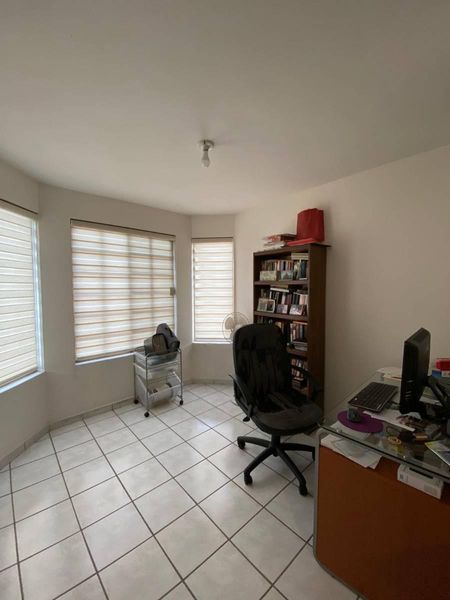Planta Baja: sala, cocina muy equipada, comedor, ½ baño, 1 recamara con baño completo, cuarto de lavado, patio amplio con asador y cochera eléctrica