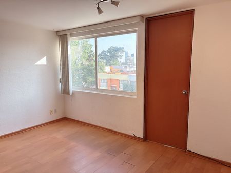 Departamento 3er piso, sala - comedor, cocina equipada, 2 recamaras, principal con vestidor y baño completo, estudio, estacionamiento 2 autos con portón eléctrico, área de lavado.