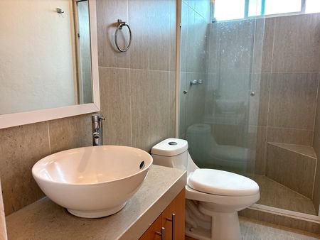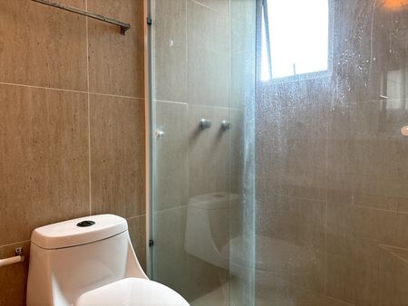 Departamento 2º piso, 3 recamaras con closet, principal con baño completo, sala-comedor, cocina equipada, sala de T.V., balcón, roof garden privado, jardín comunal, juegos para niños, salón de usos múltiples, bodega, área de lavado.