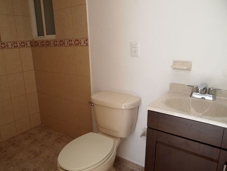 Departamento 1er piso, 2 recamaras principal con baño completo y closet, sala-comedor, barra desayunador, cocina equipada, estacionamiento un auto, área de lavado.