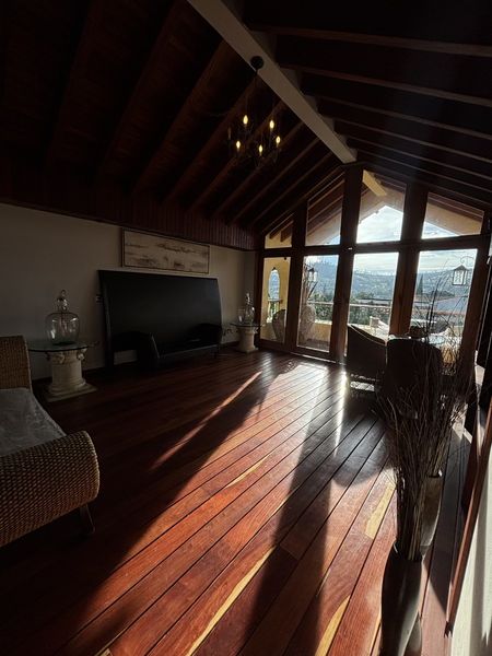 - Acabados de lujo: pisos de madera en el segundo piso, comedor y sala con muebles tapizados en piel