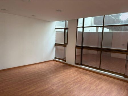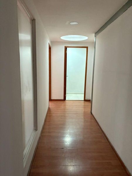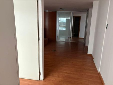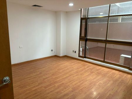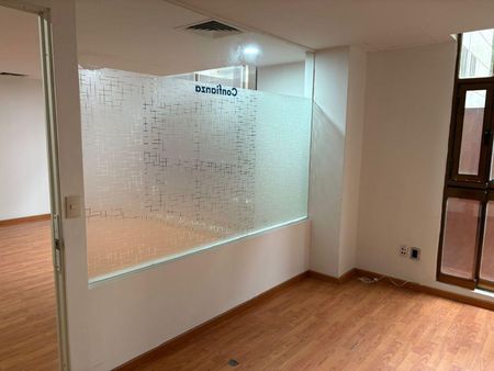 Piso de madera diseñado con divisiones de seis oficinas, recepción, una sala de juntas, tres medios, baños, tres lugares de estacionamientos.
