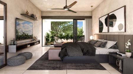 Recámara principal con terraza privada, walk-in closet, doble lavabo y baño completo