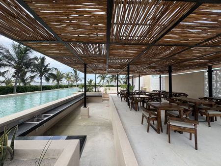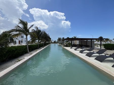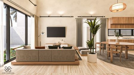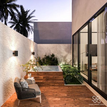 La residencia CHELEM se diferencia de las demás por un diseño arquitectónico contemporáneo con toques mediterráneos se distingue por su estilo Wabi Sabi con dobles alturas, pronunciadas curvas, acabados en chukum, piedra natural y amplias jardineras que dan vida. Un estilo único a la fachada e interiores, ademas de ser un Smart Home controlada desde la app de tu teléfono.