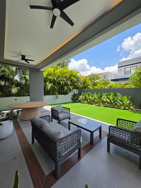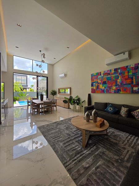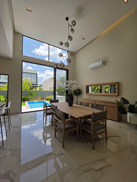Residencia premium en Oasis, Yucatán Country Club. Diseño contemporáneo pensado para vida familiar y entretenimiento, con amplios espacios interiores, acabados de carpintería fina y zonas exteriores equipadas (terraza, asador y alberca). Ubicada dentro de una privada exclusiva con acceso a campos de golf y amenidades de alto nivel.