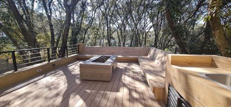 - Amplio salón de juegos con bar salida a terraza con deck de madera y lindo jardín plano