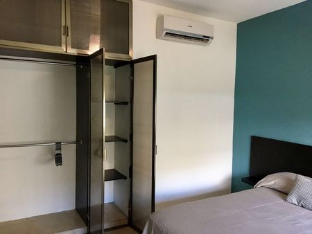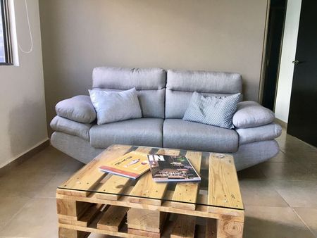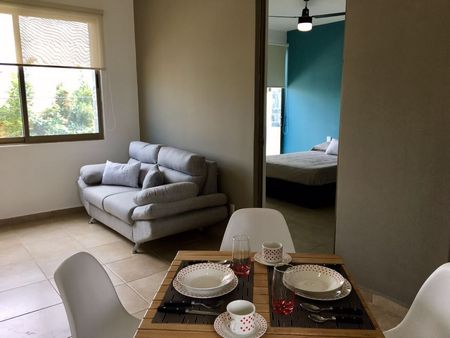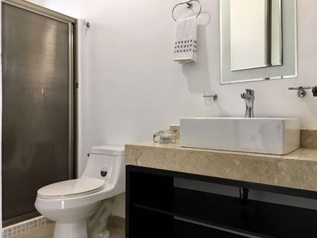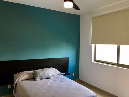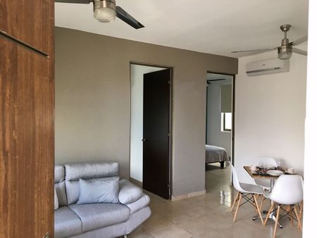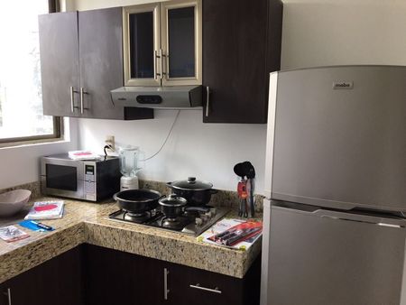 La unidad consta de 2 recamaras y 1 baño, área de estar, cocina y cuarto de lavado en un total de 63.51 m2, la unidad es amplia y con mucha luz natural. El departamento se entrega completamente amueblado, con boiler eléctrico, closets, ventiladores, aires acondicionados, cocina totalmente equipada, y centro de lavado. ¡Listo para habitarse!