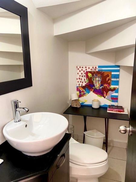 2 baños 1/2 , área de sala comedor , cocina totalmente equipada con los electrodomésticos , estufa , refrigerador .
