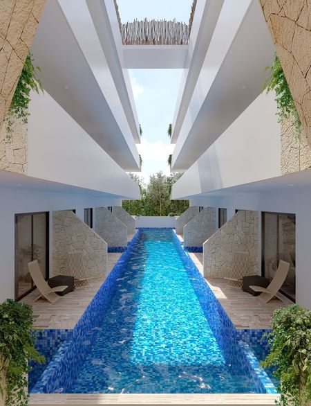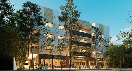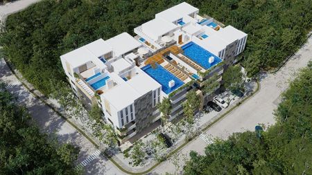 This Elite Tower complex is located in Tulum it is composed of 48 apartments of one and two bedrooms between 84.51 m2 and 42.76 m2 offers various amenities such as lobby , coworking, cinema, pool area and loungers, bar and gym. Is located in a natural and welcoming environment providing a beatiful view and unique expirence in Tulum only 15 mins. away from beach and 20 mins from Tulum Ruins.