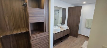 Se renta departamento de 156mts en Sayabes piso bajo de 2 recamaras cada una con baño y hermosos walk in closet cocina abierta, estancia sala comedor amplia con espacio para sala de TV, oficina o cuarto de visitas con medio baño, tiene 2 lugares de estacionamiento.