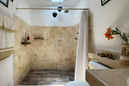 La recámara secundaria con closet y baño propio con su propia terraza techada y hamacas.