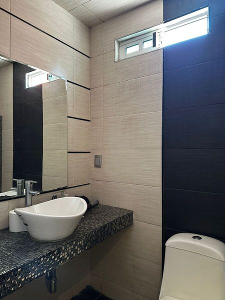 Se Vende casa distribuida en tres Niveles, en Planta Baja, se tiene un Medio Baño de visitas, seguido de area de comedor y cocina Integral con barra y Alacena.