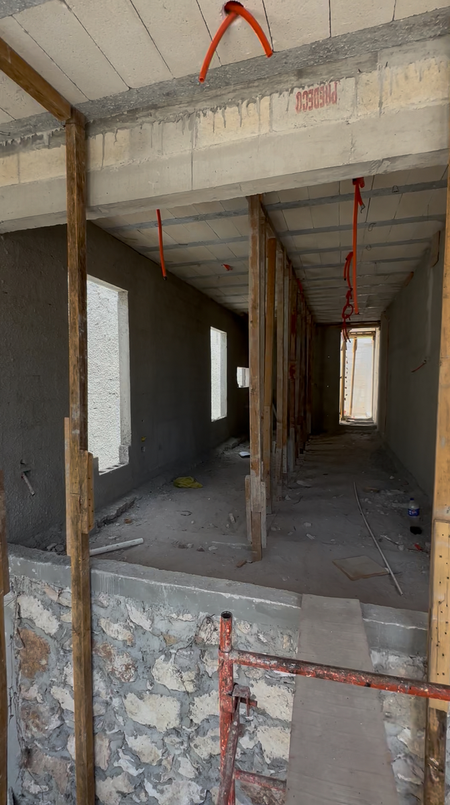 - Muros interiores: Pasta fina base cementosa.