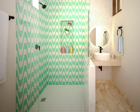 - Baños: Mosaico "Ladrillo de Hierro" y "Olas