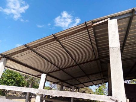 Estos dos últimos comederos tienen un pasillo divisor de 90 CM el cuáles están techados con un tinglado de 14 m de largo y 8 m de ancho de estructura metálica y madera de lámina de zinc
