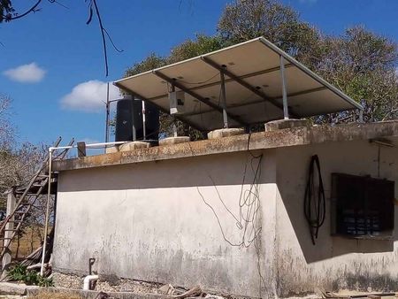 * 3 pozos profundos de los cuáles 1 se está explotando con una bomba sumergible solar de 3 caballos, que consta de 9 paneles solares.