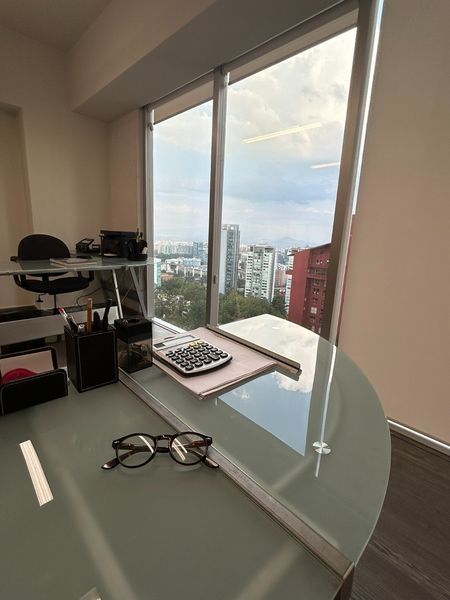 Oficina en venta con linda vista a la ciudad y a santa fe, mide 24 metros, cuenta con áreas comunes como: gimnasio, jardín, roof top piso 22 con asadores, salón de fiesta, área para mascotas