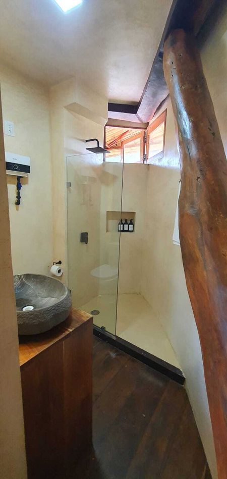 Baño privado con acabados artesanales