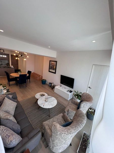 Acogedor departamento 2 recamara, la principal con baño y vetidor , la secundaria con closet y comparten baño con el area social, cocina con barra de granito de doble tarja, area de lavado, sala comedor , persianas en todo el departamento , 2 lugares de estacionamiento,