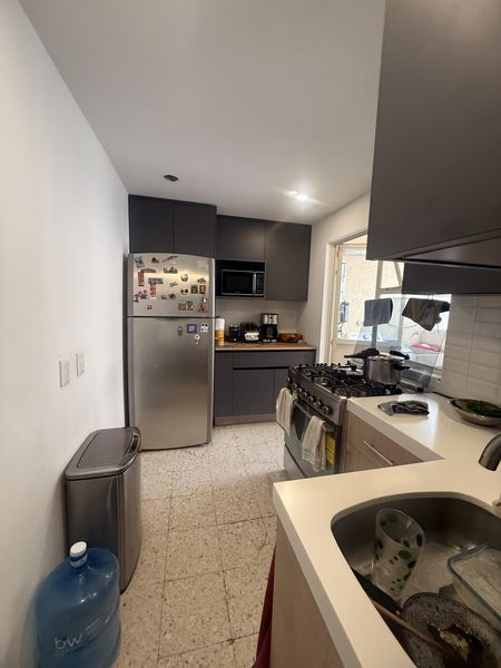 Lindo departamento, con ubicación inmejorable, cuenta con tres habitaciones, dos baños completos, amplia sala y comedor y terraza , tiene dos espacios para autos pequeños o un espacio para camioneta , estacionamiento cerrado con portón eléctrico.