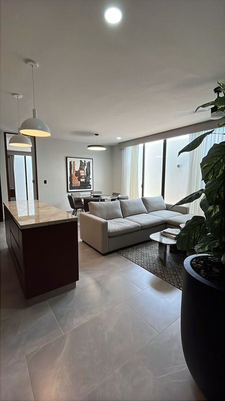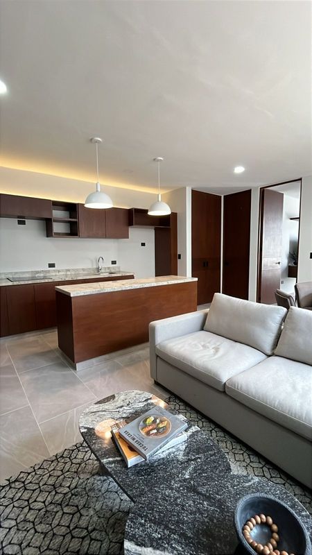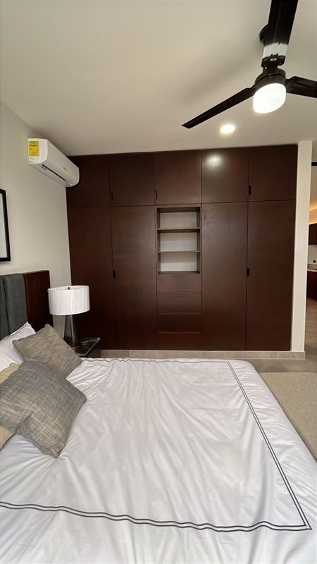 cocina, carpintería bajo la isla, closet vestido con puertas, cancel fijo de cristal