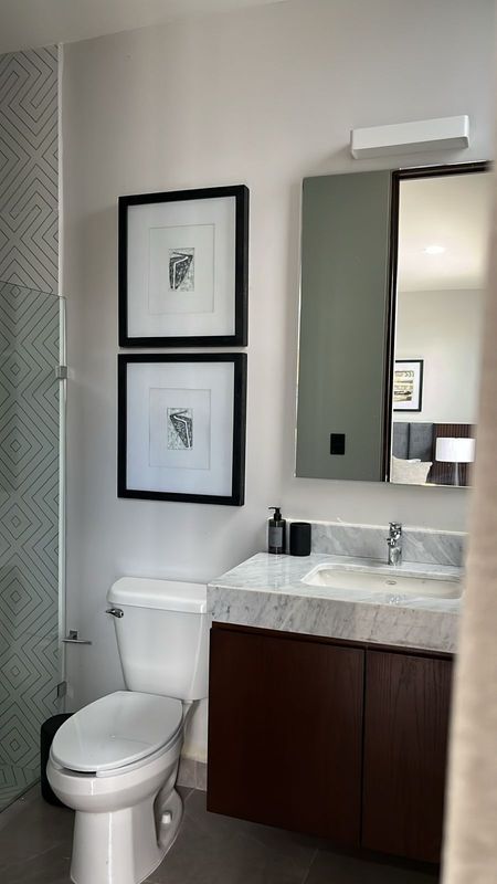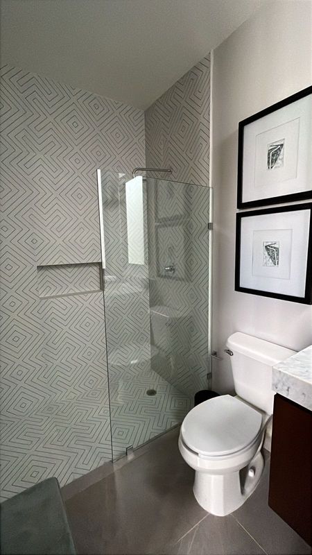 templado, espejos en baños, mármol en lavabos. Mueble de carpintería bajo