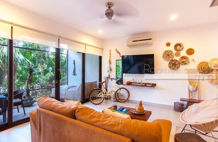 Ubicado a solo minutos de la impresionante costa del Caribe, este condo en planta baja ofrece la combinación perfecta de lujo y conveniencia, con acceso exclusivo a campos de golf de clase mundial y las amenidades del renombrado Tulum Country Club (anteriormente Bahia Principe). Ya sea que busques escapar al paraíso o invertir en una propiedad con gran potencial de renta, esta encantadora residencia es una visita obligada.