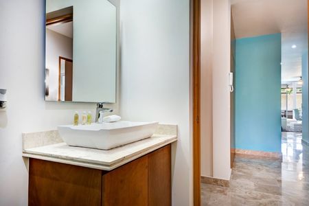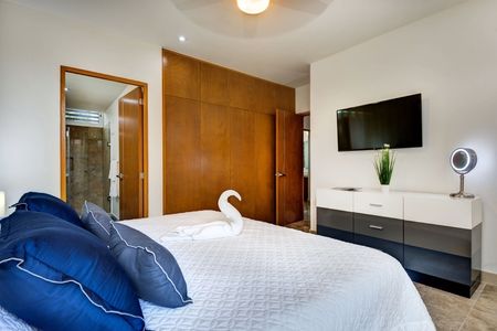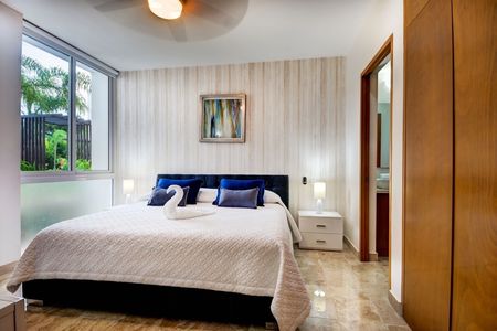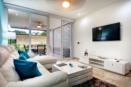 Este condominio de lujo en venta en Terrazas en Akumal ofrece atractivos espacios interiores y exteriores y las ventajas de vivir en una comunidad turística. Ubicado en un campo de golf residencial de 717 acres, el complejo está rodeado de campos de golf de clase mundial ya solo minutos de la belleza natural de la costa caribeña. Tulum Country Club (anteriormente Bahia Principe) está situado en el corazón de la Riviera Maya, aproximadamente a medio camino entre Playa del Carmen y Tulum, ya solo 50 millas (80 km) al sur del Aeropuerto Internacional de Cancún.