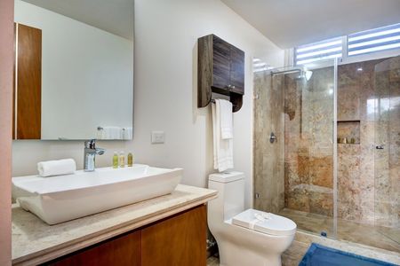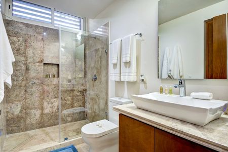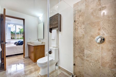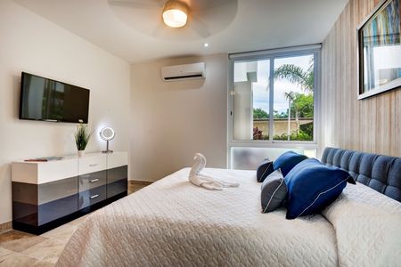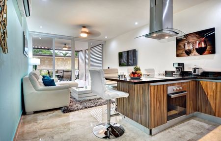 Este condominio moderno y luminoso de 2 dormitorios y 2 baños tiene todo lo que podría desear en una casa de vacaciones o una residencia para todo el año. Cuenta con un amplio diseño de concepto abierto y recibe toneladas de sol caribeño. Tiene una cocina totalmente equipada con una isla y electrodomésticos de primera calidad, y una sala de estar bien amueblada que se abre a una terraza cubierta con una pantalla de privacidad y una mesa de comedor. Este es un lugar encantador para disfrutar de su café y desayuno por la mañana o de una copa de vino por la noche. Los dormitorios cuentan con camas king-size y closets. Uno de los dormitorios tiene un lujoso baño en suite y el otro se abre a una segunda terraza cubierta. Este condominio está bellamente mantenido con pisos cerámicos y acabados de primera calidad. Se ofrece a la venta completamente amueblado y equipado con todas las comodidades prácticas que usted esperaría, incluidos ventiladores de techo, aire acondicionado, lavadora, persianas y 3 televisores.