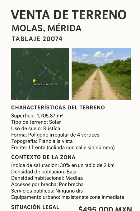 TERRENO A LA VENTA EN MOLAS, MÉRIDA
