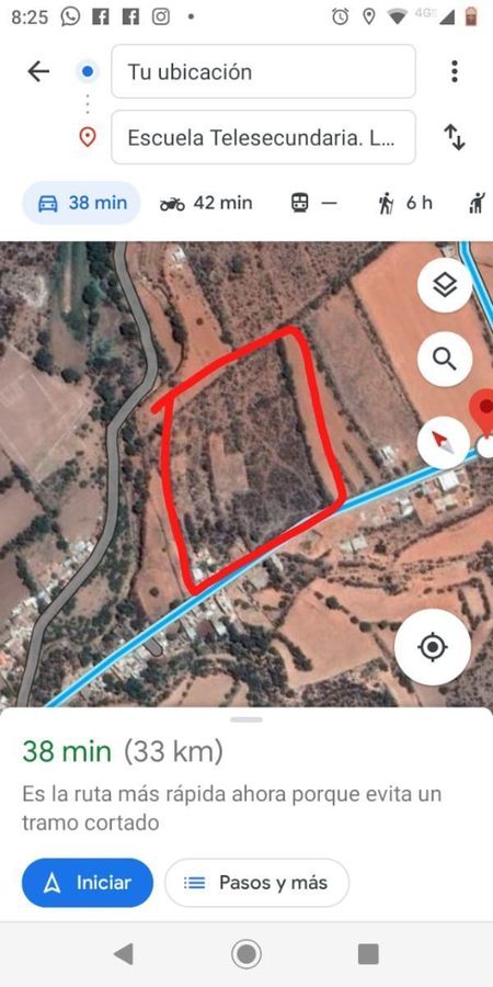 El terreno está frente a Fraccionamiento Pedrera, telesecundaria, kínder y servicio de salud.