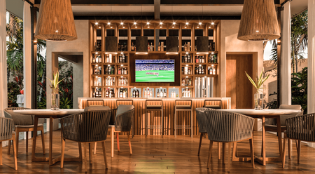 Terraza techada con bar