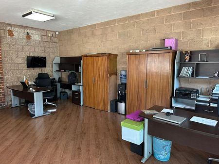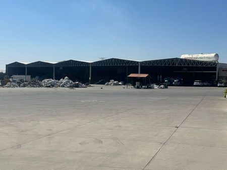 con oficinas, patio de maniobras, con piso de concreto hidráulico, caseta de vigilancia.