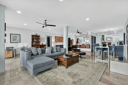 La cocina y los baños fueron remodelados recientemente, con acabados modernos y pisos de mármol en todo el espacio. Cuenta con detalles prácticos como amplio almacenamiento, sistema de purificación de agua y electrodomésticos modernos, incluyendo lavadora, secadora y lavavajillas.
