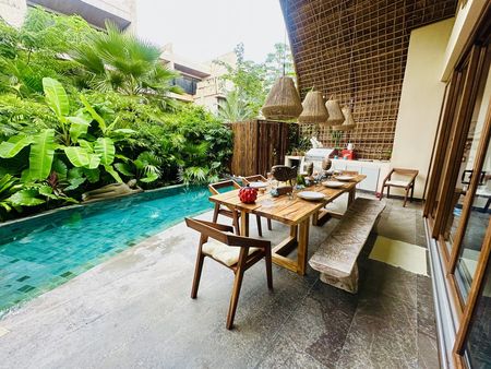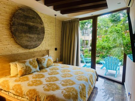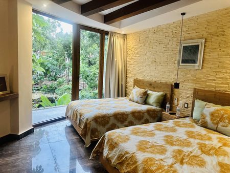 La Villa cuenta con una hermosa alberca privada, terraza con asador, sala - comedor, con doble altura, cocina, integral, abierta equipada con: refrigerador, horno, lavavajillas, microondas y 2 recámaras con clóset y baño, una de ellas con terraza y vista al cenote.