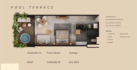 * TERRA Son 3 torres con 46 unidades, áreas privadas de swim ups y alberca cenote común. (Entrega Dic 2024)