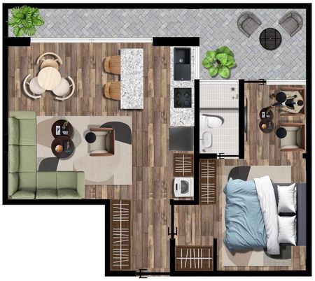 -Departamento con Terraza en Planta Baja: Una recámara, DE 52 M2 HABITABLES + una terraza privada de 15 m². total 67 m2. INTERIOR Y LUMINOSO.