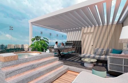 Áreas Sociales: Lounge bar, Cafetería, Jardines con asadores, Roof Garden, Salón eventos, Jacuzzi, Fire Pit, Áreas Verdes.