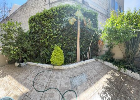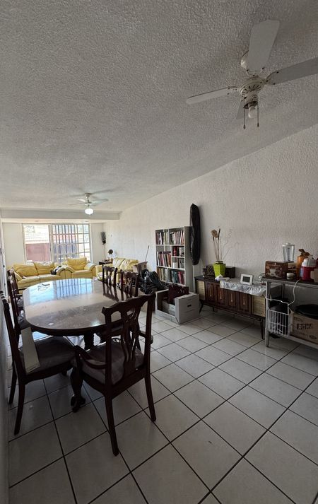 Amplia estancia, te recibe de forma agradable, porque te permite acomodar los muebles de múltiples formas, cocina equipada con planchas de granito, gabinetes y pisos nuevos, si caminas hacia el fondo sales a un patio, el cual es muy agradable, y puede servir para convivencia y reuniones, Con instalaciones de lavado y planchado. Lamparas, plantas y jardineras.