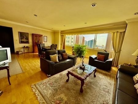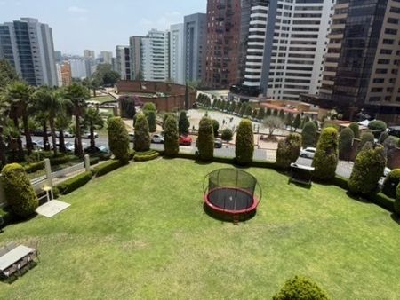 EXCELENTE DEPARTAMENTO CON GRAN VISTA AL JARDIN , ELEVADOR DIRECTO AL PISO DE LA SALA, PUERTA SEGURIDAD, SALA Y COMEDOR, COCINA INTEGRAL GRANDE CON DESAYUNADOR, AREA DE LAVADO Y CUARTO DE SERVICIO GRANDE CON BAÑO, FAMILY Y 3 RECAMARAS CON VESTIDOR Y BAÑO, 2 ESTACIONAMIENTOS Y BODEGA. EN AREA COMUN: AMPLIOS JARDINES CON JUEGOS PARA NIÑOS Y ASADORES, PADEL, ALBERCA TECHADA , GYM, REGADERAS, SALON DE FIESTAS