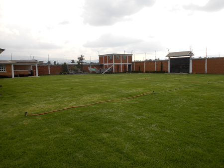50 metros de fondo por 44 metros de frente, haciendo un total de 2,200 metros cuadrados, totalmente bardeado, cuenta con malla ciclónica e instalación de cable electrificado con alarma