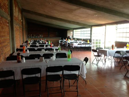 Cuenta con 9 servicios de sanitarios, una barra de 6 metros de largo, Cocina, Área para carne asada y dos hoyos para casos de carnitas o barbacoa