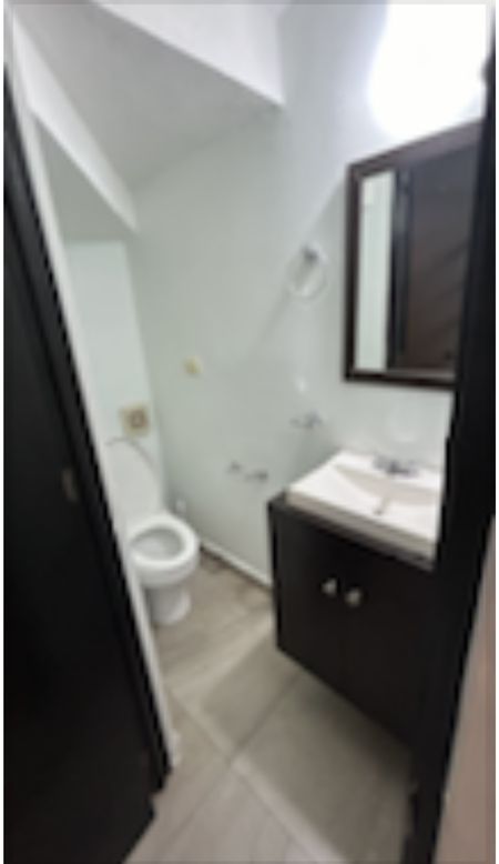 Comparten baño con inodoro de 1 pieza, lavabo con meseta de cantera y regadera con llave mezcladora
