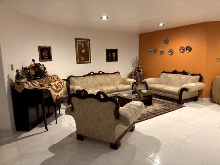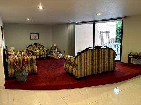 Casa pisos con 3 recamaras, principal con vestidor y baño, sala con salida a terraza, comedor, estudio, cocina equipada, área desayunador, sala de T.V., sala de juegos con espacio para bar, cuarto de servicio con baño, área de lavado, patio, jardín, 2 estacionamientos en total para 4 autos, cisterna 3,300 lts
