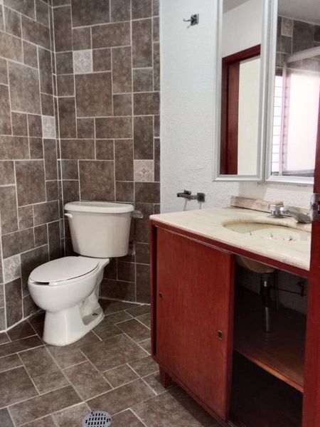 Dos recámaras, cada una con su propio baño, sala, comedor, cocina, baño de visitas y área de lavado.