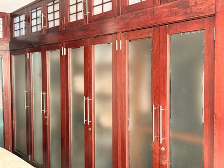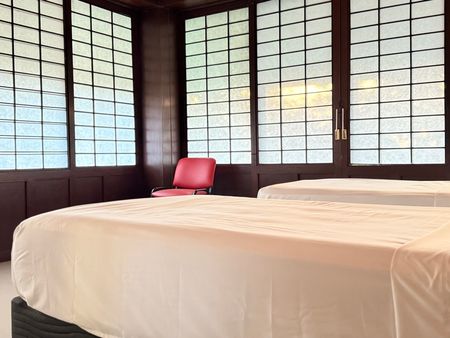 Más de 27,000 pies de madera de pino fueron utilizados en su construcción, creando una sensación de refugio zen, cálido y envolvente. Los paneles estilo shoji, las puertas corredizas, los techos de madera y los acabados orientales otorgan a la propiedad una identidad única y una belleza difícil de replicar hoy en día.