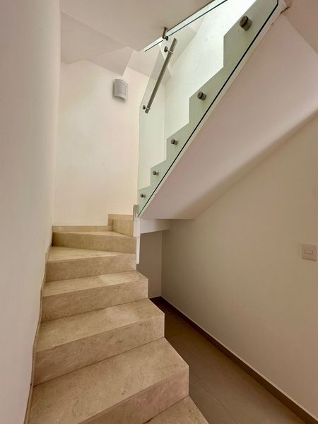 En la planta baja: Garage techado para 2 autos, sala y comedor con doble altura y con salida a al jardín trasero o terraza, cocina totalmente equipada con alacena y barra de cuarzo, cuarto de lavado y medio baño de visitas.