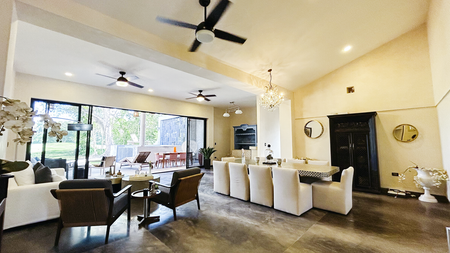 - Alberca cubierta de mármol martelinado y con diseño en cascada en mármol